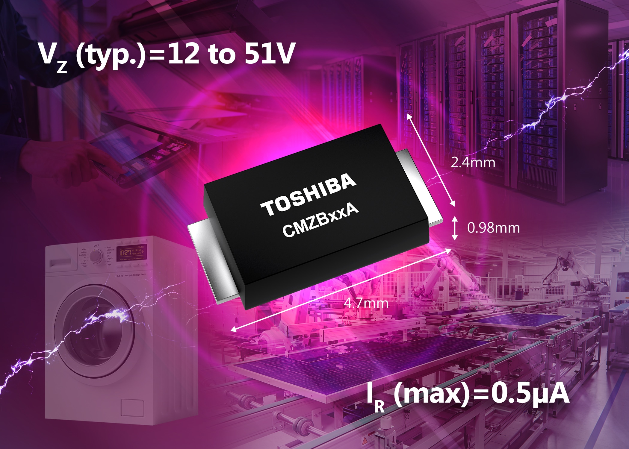 Toshiba Electronics Europe GmbH (“Toshiba”) has expanded their range of Zener diodes with the launch of a further 15 products. These devices will be used to protect the power lines of semiconductor devices and equipment from switching surges and long duration overvoltage pulses. They will be useful in a wide range of applications, including consumer and industrial.