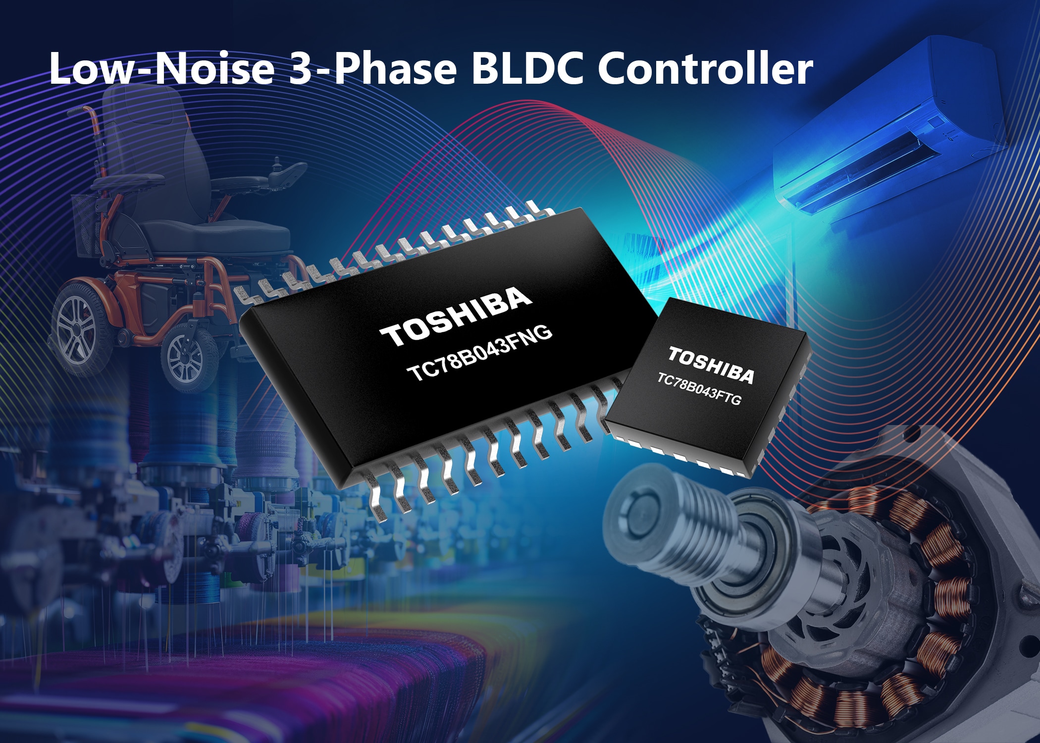Toshiba Electronics Europe GmbH (“Toshiba”) has launched two sine-wave pulse width modulated (PWM) drive controllers – TC78B043FNG and TC78B043FTG – for three-phase brushless DC (BLDC) motors, which can support both surface permanent magnet (SPM) and interior permanent magnet (IPM) motor types with low noise and high efficiency.