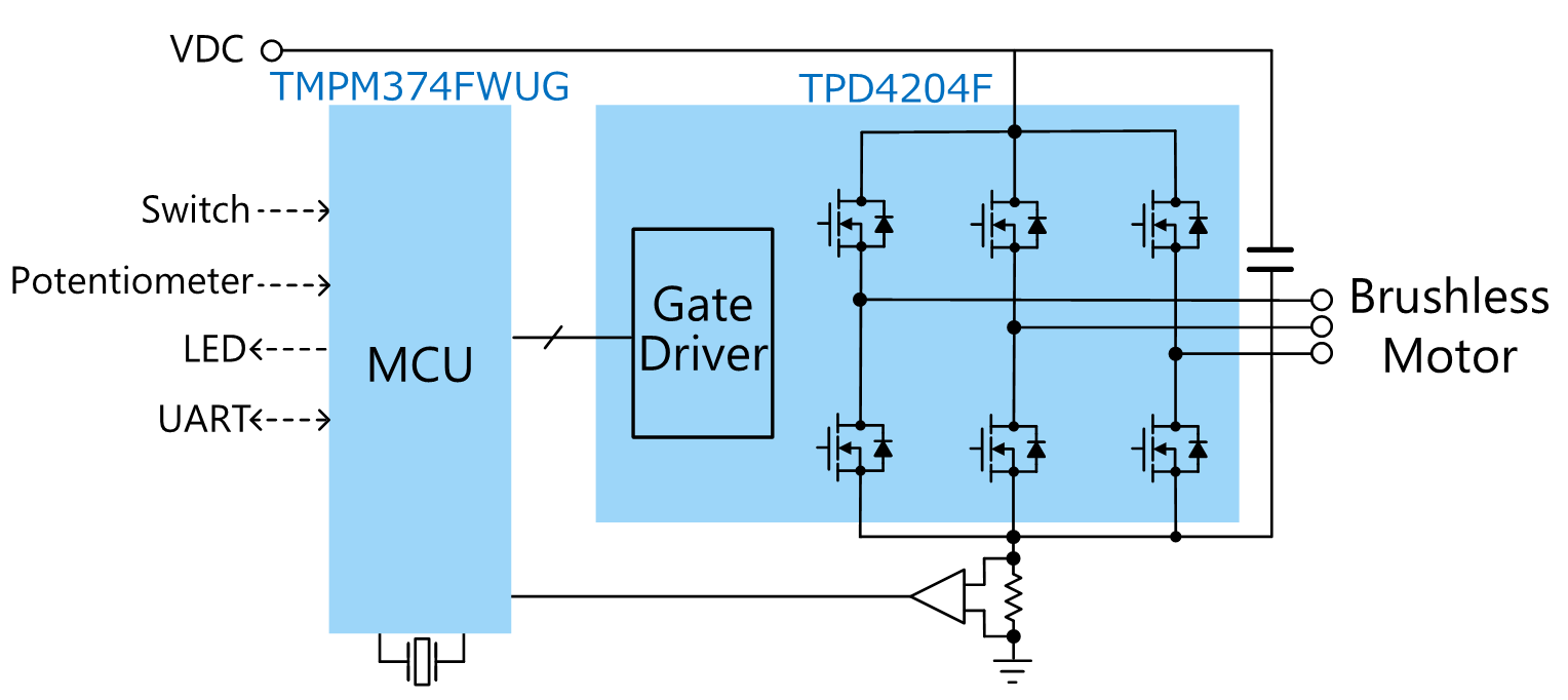 インテリジェントパワーデバイスを使用したDC300 V入力ブラシレスDCモーターセンサーレス駆動回路。モーター制御MCUによりベクトル制御を実現。各種回路の設計ポイントの解説、設計データ、使用方法などを提供。